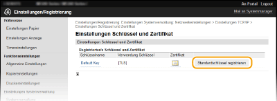 Verwenden des BedienfeldsSie können die Kommunikation mit TLS-Verschlüsselung auch über <Menü> aktivieren oder deaktivieren. TLS verwenden