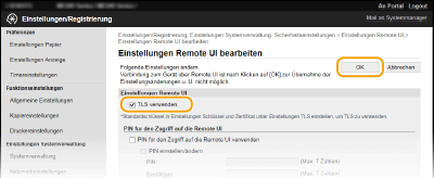 Aktivieren Sie das Kontrollkästchen [TLS verwenden], und klicken Sie auf [OK].