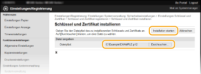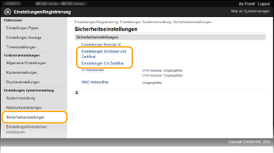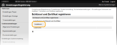 [Einstellungen Schlüssel und Zertifikat] oder [Einstellungen CA-Zertifikat].