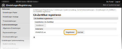 Klicken Sie rechts neben dem zu registrierenden Zertifizierungsstellenzertifikat auf [Registrieren].