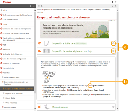 Haga clic para visualizar información sobre cómo ver la Guía de usuario, cómo realizar una búsqueda y otra información.
