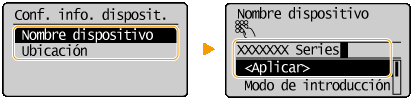 Introduzca el <Nombre dispositivo> o la <Ubicación> (Introducción de texto)