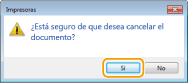 Cancelación desde una aplicaciónEn algunas aplicaciones, aparecerá una pantalla como la siguiente. Podrá cancelar la impresión haciendo clic en [Cancelar].
