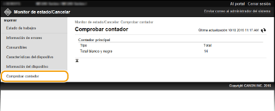 Se mostrará información sobre el tamaño y el tipo de papel para el origen del papel, el número de modelo del cartucho de tóner, etc. También podrá hacer clic en [Comprobar detalles de consumibles] en