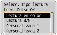 Escanee desde el equipo de una forma más sencillaSi tiene alguna preferencia que utilice de forma regular, como escaneado a color o en blanco y negro, o un ordenador predeterminado en el que guarde los documentos escaneados, puede resultarle complicado especificar estas opciones cada vez que escanee. Registre estas opciones en una tecla [Scan -> PC] para poder escanear con tan solo pulsar una tecla. Escaneado utilizando la tecla [Scan -> PC]