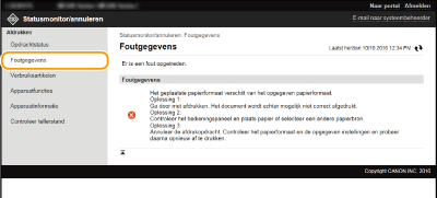 Klik op [Opdrachtnummer] op de gepauzeerde documenten om gedetailleerde informatie weer te geven. U kunt de gebruikersnaam en de paginatelling van het afgedrukte document controleren.