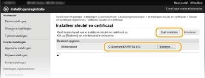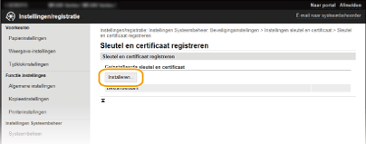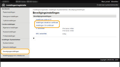 Klik op [Instellingen sleutel en certificaat] voor het installeren van een sleutelpaar of [Instellingen CA-certificaat] voor het installeren van een CA-certificaat.
