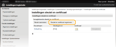 Klik op [Sleutel en certificaat registreren] of [Registreer CA-certificaat].