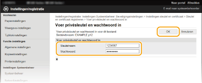 [Instellingen sleutel en certificaat] of [Instellingen CA-certificaat].