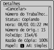 Apresenta o estado atual do item selecionado. O ecrã <Status Trab. de Cópia> é mostrado abaixo como exemplo.