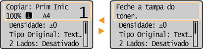 Aparecem mensagens na parte superior do ecrã quando, por exemplo, a cartridge de toner chega ao fim da sua vida útil ou uma tampa fica aberta. O visor alterna entre a visualização do ecrã normal e da mensagem.