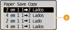 Pode utilizar <2 em 1>/<4 em 1> para copiar vários documentos numa só folha e <2 Lados> para copiar o documento nos dois lados de uma folha. A utilização da tecla