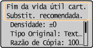 Esta mensagem avisa o utilizador de que uma cartridge de toner atingiu o fim da sua vida útil. É aconselhável substituir a cartridge por uma nova. Pode continuar a imprimir, mas não é possível garantir a qualidade de impressão.
