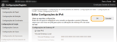 Utilizar o painel de controloTambém pode aceder às definições de IPv6 a partir do ecrã <Menu>. Configurações de IPv6