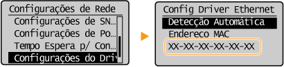 . Prima <Informações de Rede> <Método de Conexão de Rede> e selecione a definição que pretende ver. |