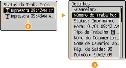 para selecionar <Status do Trabalho de Impressão> e prima
