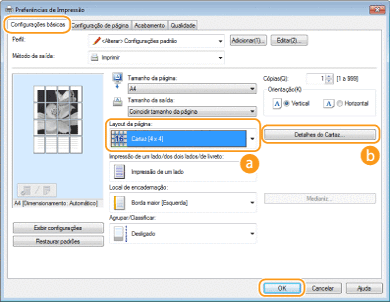 Não é possível selecionar definições de tamanho de póster quando a impressão de frente e verso está ativada. Selecione [Impressão de um lado] em [Impressão de um lado/dos dois lados/de livreto] e, em seguida, selecione uma definição de tamanho de póster.