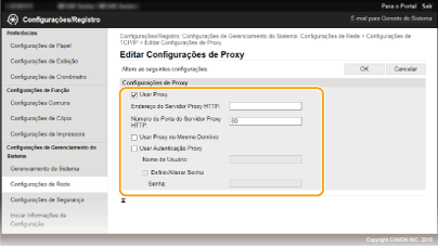 Selecione a caixa de verificação [Usar Proxy] e especifique as definições necessárias.