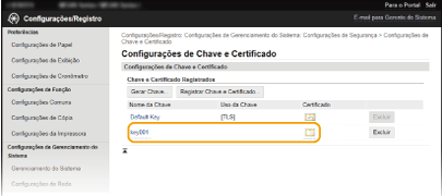 Não é possível apagar um par de chaves que esteja a ser utilizado para qualquer finalidade, como, por exemplo, quando aparece a indicação "[TLS]" ou "[IEEE 802.1X]" por baixo de [Uso da Chave]. Nesse caso, desative a função ou substitua o par de chaves antes de o apagar.