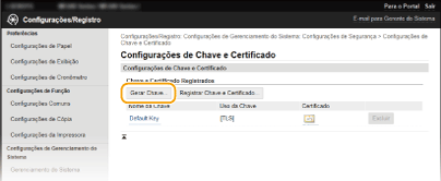 Clique em [Nome da Chave] ou [Certificado] para registar o certificado.