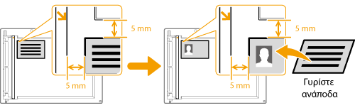 Μπορείτε να χρησιμοποιήσετε την επιλογή <Αντιγραφή Ταυτότητας> για να αντιγράψετε την μπροστινή και την πίσω πλευρά μιας ταυτότητας στην ίδια πλευρά μιας σελίδας. Η λειτουργία αυτή είναι χρήσιμη κατά την αντιγραφή διπλώματος οδήγησης ή ταυτότητας.