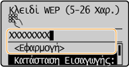 Εισαγάγετε το κλειδί δικτύου χρησιμοποιώντας τα αριθμητικά πλήκτρα, επιλέξτε <Εφαρμογή> και πατήστε