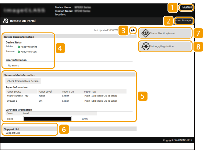 Γίνεται αποσύνδεση από το Remote UI (Απομακρυσμένο περιβάλλον εργασίας). Θα εμφανιστεί η σελίδα σύνδεσης.