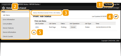 Εμφανίζει την κατάσταση των εγγράφων που πρόκειται να εκτυπωθούν και το ιστορικό εγγράφων εκτύπωσης και αντιγραφής. Μπορείτε επίσης να ελέγξετε την κατάσταση της συσκευής.