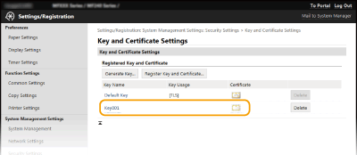 [Key and Certificate Settings].