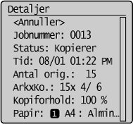 Viser den aktuelle status for det valgte element. Skærmen <Status for kopijob> er vist herunder som et eksempel.