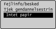 Når der opstår en fejl, vil der i visse tilfælde blive vist instruktionerne i, hvordan der skal reageres på fejlen. Følg anvisningerne på skærmen for at løse problemet. Den skærm, der vises, når der opstår et papirstop, er vist som eksempel herunder (