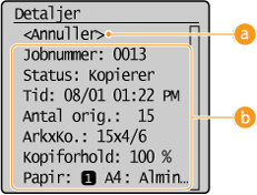 på kontrolpanelet. Du kan også annullere kopiering, efter at du har kontrolleret kopistatussen.