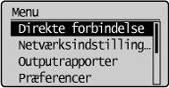 Automatisk afslutning af Direkte forbindelseDu kan også konfigurere maskinen til automatisk at afslutte den direkte forbindelsestilstand, et bestemt stykke tid efter at maskinen er gået i Direkte forbindelse. Hvis <Trådløst LAN/Direkte forb. (autoskift)> er angivet som forbindelsesmetoden i Direkte forbindelse, opretter maskinen automatisk forbindelse til et trådløst LAN efter afslutning af Direkte forbindelse.