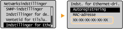 . Tryk på <Netværksinformation> <Netværksforbindelsesmetode>, og vælg den indstilling, der skal vises. |