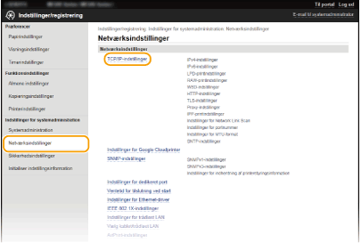 Brug af kontrolpaneletDer er også adgang til DNS-indstillinger fra skærmbilledet <Menu>. IPv4-indstillinger IPv6-indstillinger