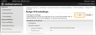 Afkrydsningsfeltet [Brug IPv6] skal være markeret for at konfigurere disse indstillinger. Indstilling af IPv6-adresser