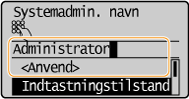 Angiv et systemadministratornavn på op til 32 tegn, vælg <Anvend>, og tryk på