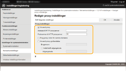Markér afkrydsningsfeltet for at bruge den angivne proxyserver, når der skal kommunikeres med en HTTP-server.