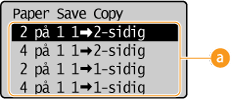, men kantene på dokumentet blir kanskje ikke kopiert hvis du øker den.<Paper Save Copy> er ikke tilgjengelig når du bruker <2-sidig>, <2 på 1>/<4 på 1> eller <ID-kortkopi>.