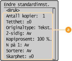 . Hvis du endrer disse standardinnstillingene til å passe med operasjonene som du utfører ofte, kan du fjerne behovet for å konfigurere de samme innstillingene hver gang du lager kopier.
