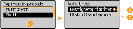 Papir), brukes <Hastighetsprioritet> for papirkilden i stedet. I slike tilfeller må du legge inn papiret på samme måte som når <Hastighetsprioritet> er valgt (