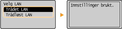 Velg <Trådet LAN> eller <Trådløst LAN> og trykk på