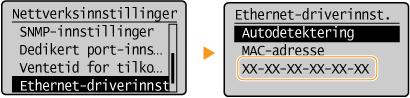 . Trykk på <Nettverksinformasjon> <Nettverkstilkoblingsmetode>, og velg innstillingen som skal vises. |