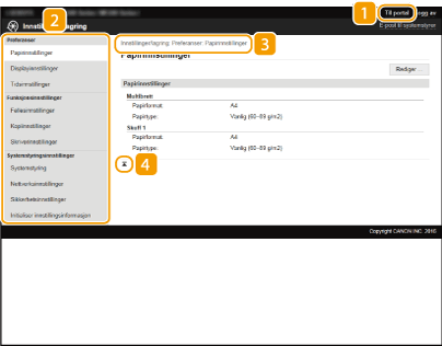 Viser siden [Innstillinger/lagring]. Når du er logget på i systemstyrermodus, kan du endre innstillingsalternativene og lagre / laste inn registrerte data.