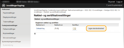 Klikk på [Lagre standardnøkkel] til høyre for nøkkelparet du vil bruke til klientgodkjenning.