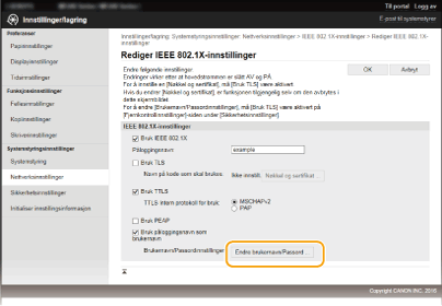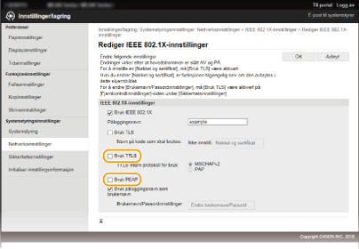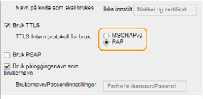 Merk av for [Bruk TTLS] eller [Bruk PEAP].