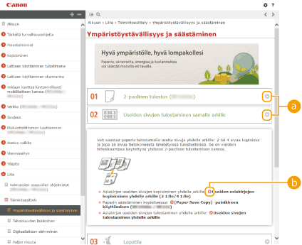 Napsauta tätä, kun haluat näyttää tiedot Käyttöopas-ohjeen tarkastelemisesta ja hakujen tekemisestä ja muita tietoja.
