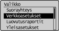 Kaikki verkkoasetukset ja lyhyet kuvaukset luetellaan. Oletusasetukset on merkitty tikarilla (