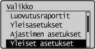Kaikki paperikasetin toimintaa ja paperinsyöttötapaa koskevat asetukset ja lyhyet kuvaukset näytetään. Oletusasetukset on merkitty tikarilla (  ).