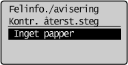 I vissa fall visas anvisningar om hur du ska åtgärda felet. Följ anvisningarna på skärmen för lösa problemet. Skärmen som visas när ett pappersstopp inträffar visas nedan som ett exempel (